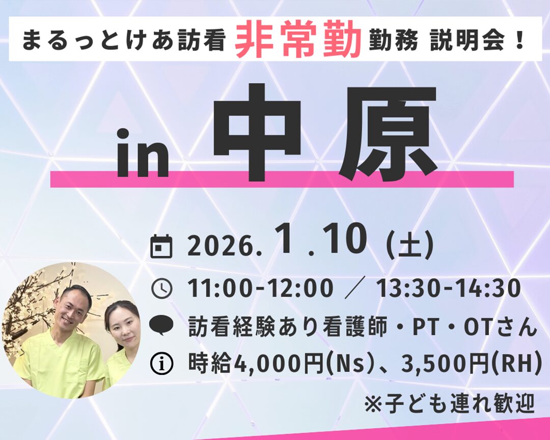 | イベント名 | まるっとけあ訪問看護(非常勤)『事前説明会 in 中原』※訪問看護経験者限定 |