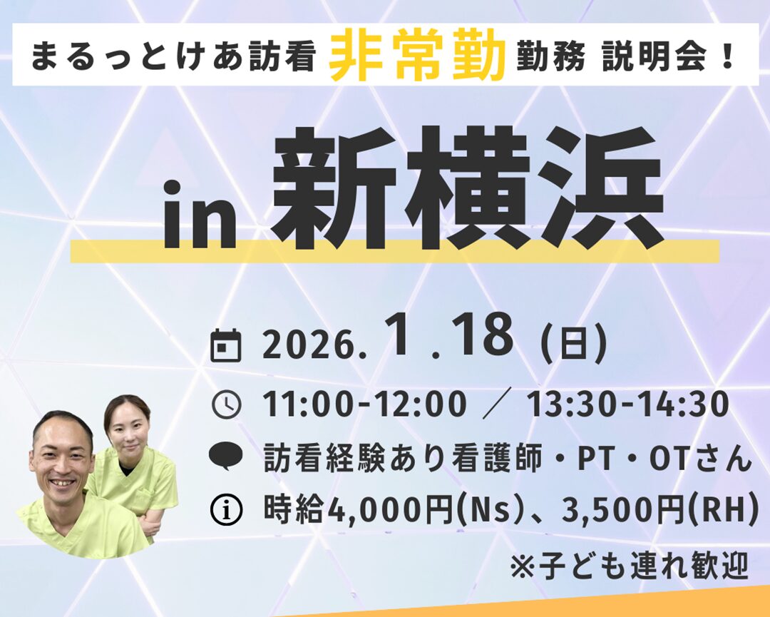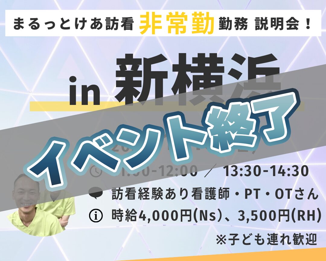 | イベント名 | まるっとけあ訪問看護(非常勤)『事前説明会 in 新横浜』※訪問看護経験者限定 |